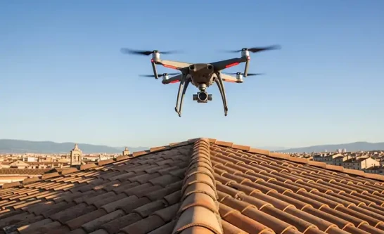 Inspection de toiture par drone avec photos et vidéos HD, diagnostic précis des défauts, sans échelle ni déplacement sur le toit.